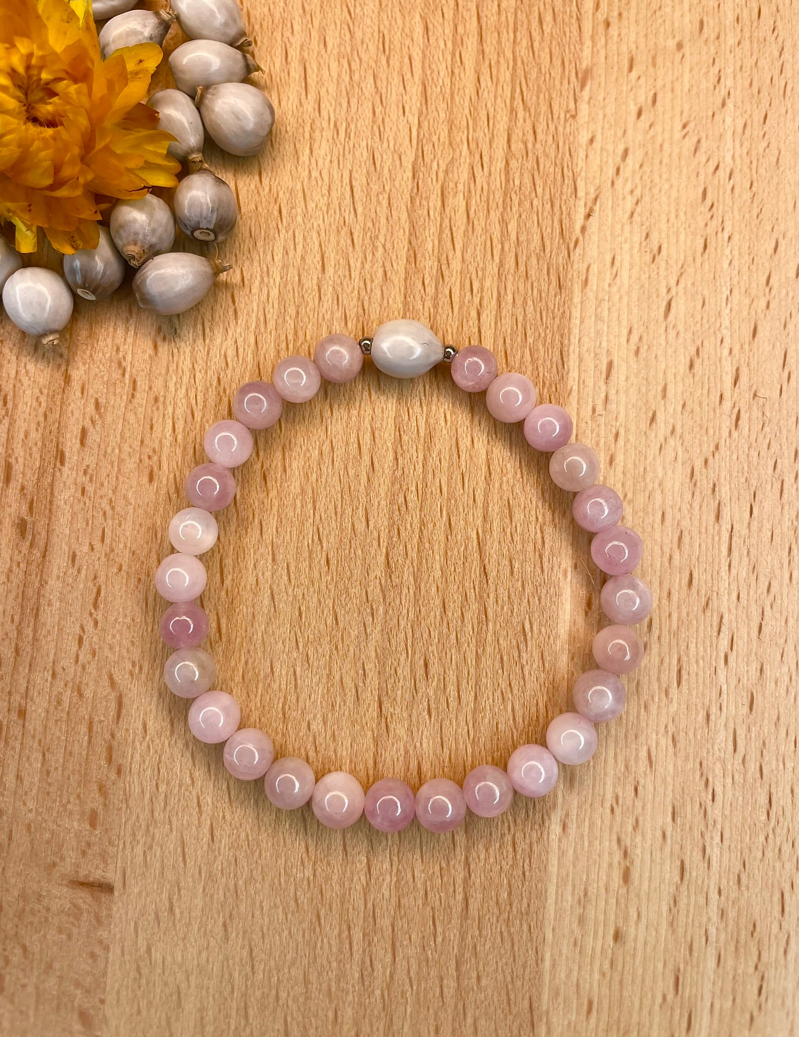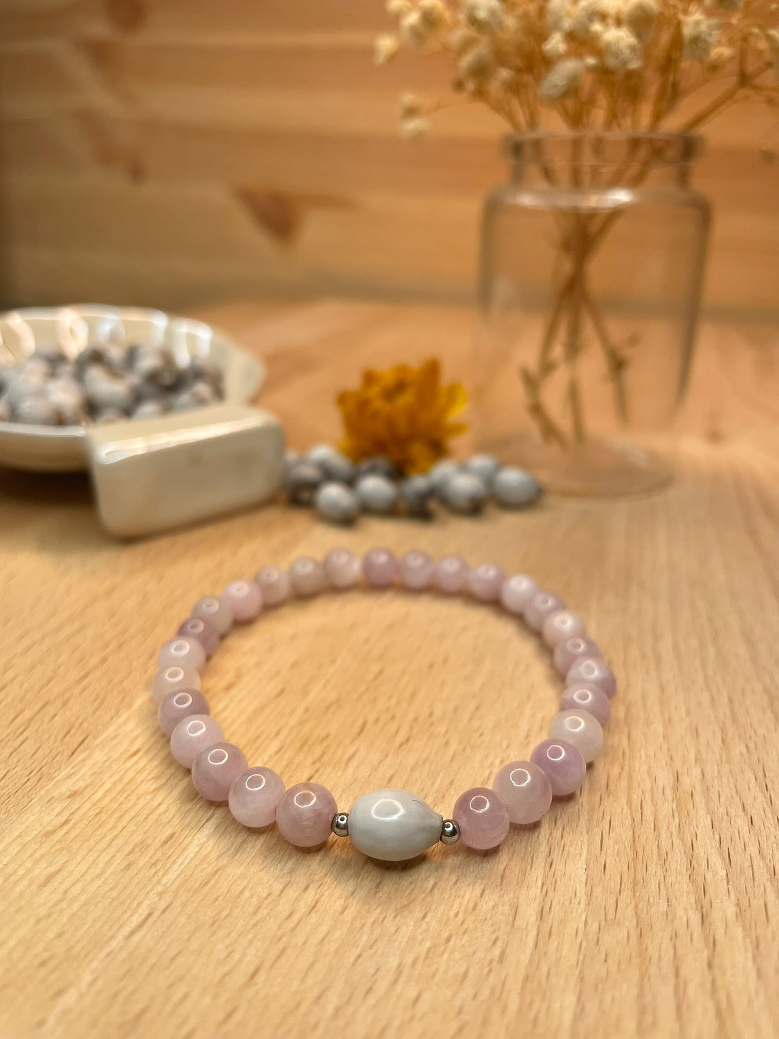 Chacun de nos bracelets est composรฉ de pierres naturelles, de deux perles de dรฉcoration en hรฉmatite et d'une Larme de Job, รฉgalement appelรฉe Graine de Job.ย