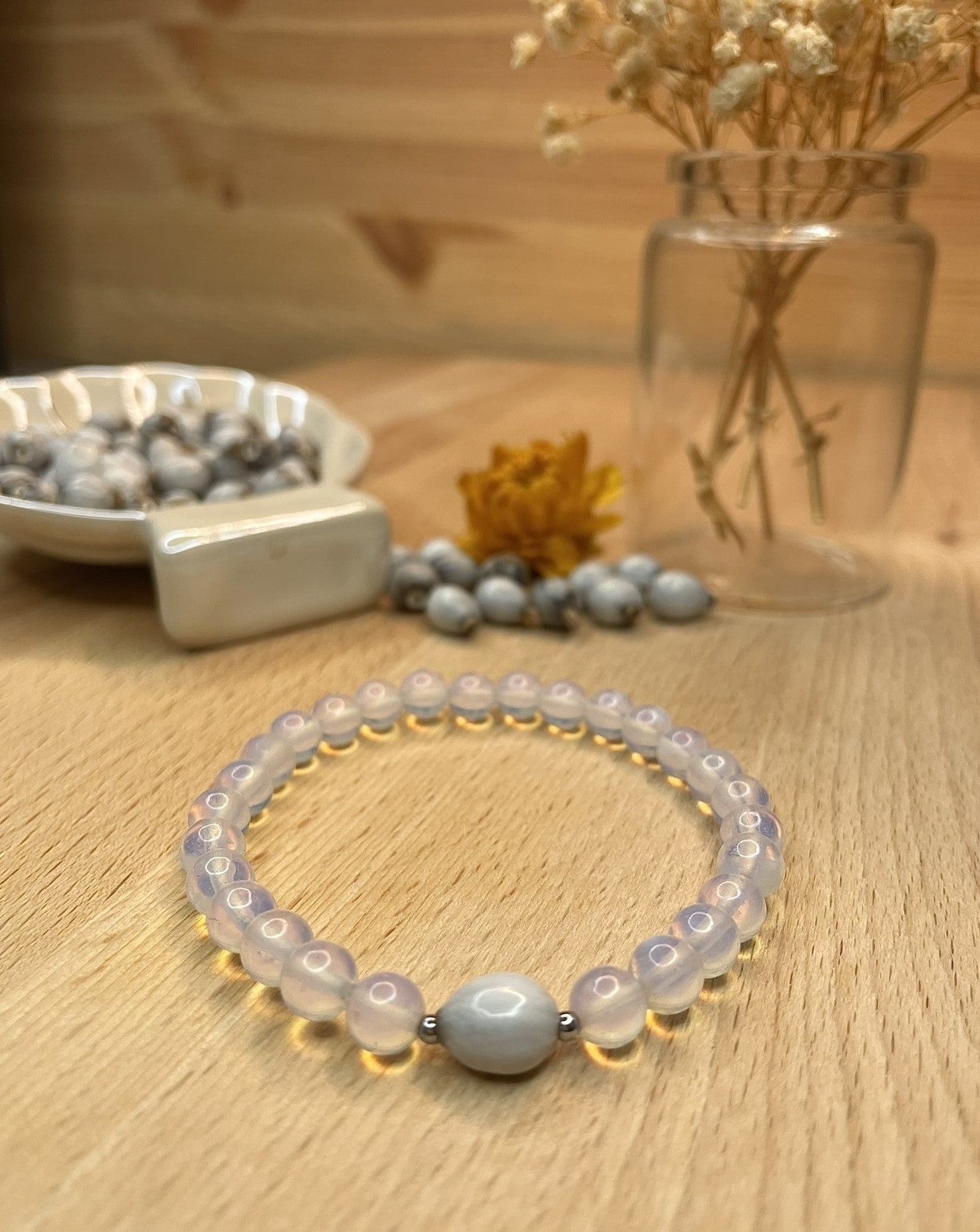 Chacun de nos bracelets est composรฉ de pierres naturelles, de deux perles de dรฉcoration en hรฉmatite et d'une Larme de Job, รฉgalement appelรฉe Graine de Job.ย